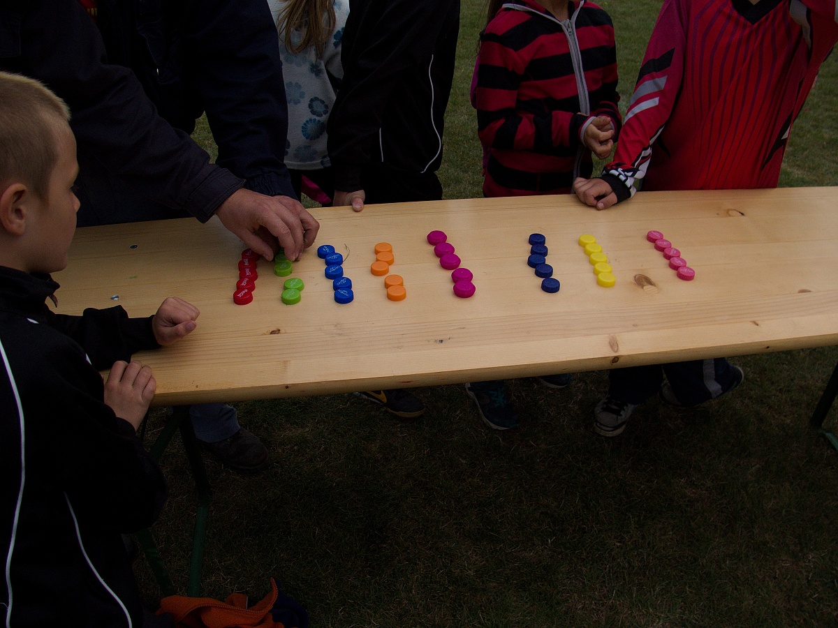 Poslední soutěž (překvapení pořadatele) bylo sbírání víček na čas. Vedoucí vždy vylosoval barvu a typ víčka a úkolem bylo vždy najít 5 stejných víček. Jakmile to bylo, musí všichni soutěžící k vedoucímu a teprve potom může losovat další víčko. A to celé trvá tři minuty a dokáže to vyčerpat. Upřesnili jsme si u pořadatelů pravidla, vymysleli taktiku a šli na to. Mladší jeli na plné otáčky, skvěle komunikovali a výsledkem bylo celkem 40 víček což jak se ukázalo později byl rekord a stejný počet měli jen hasiči z Komárova ve starších. To už jsem tušil, že se rýsuje velmi dobré umístění. Se staršíma jsme ještě trochu doladili taktiku a šlo se na věc. I tam jsme mohli s počtem 36 víček doufat v dobré umístění.