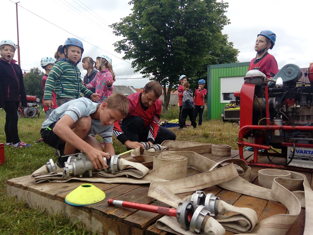 Po přestavbě trati ještě předvedly své umění v požárním útoku děti.