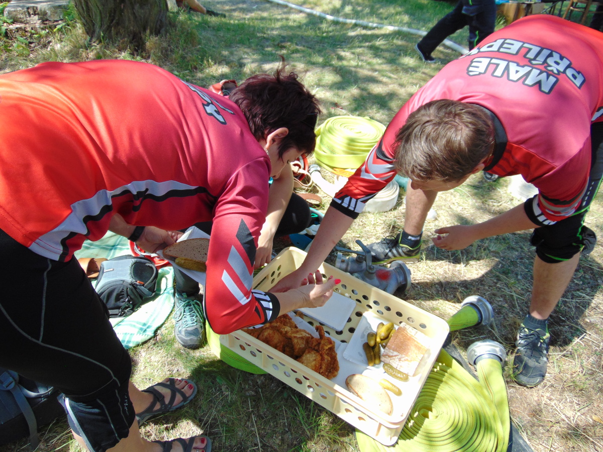 Následoval požární útok, který se nám moc nevyvedl. Koš se nám podařilo našroubovat až napotřetí a i spojení savic nám trvalo déle. Výsledkem bylo deváté místo.