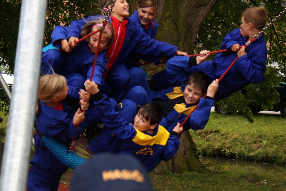 Našemu družstvo mladších ve složení Jakub Kutina (koš), Adam Rynda a Bára Hrůšová (béčka), Matěj Krejča a Milda Trynerová (rozdělovač), Petra Bílá (levý proud) a Kačka Zajíčková (pravý proud) vše perfektně klaplo a s dosaženým časem 19,6 vteřiny se dočkalo zaslouženého aplausu a následně i vítězného umístění na prvním místě.