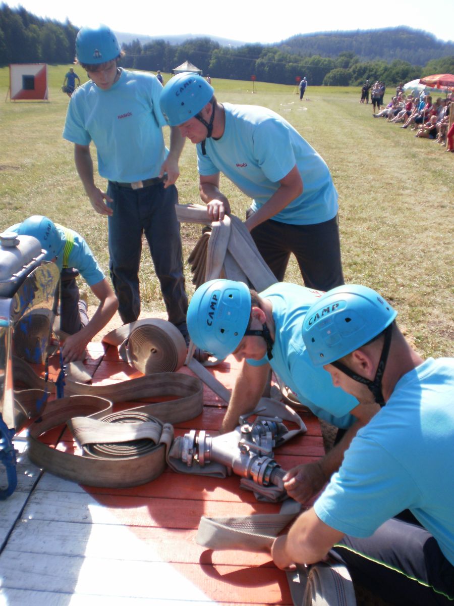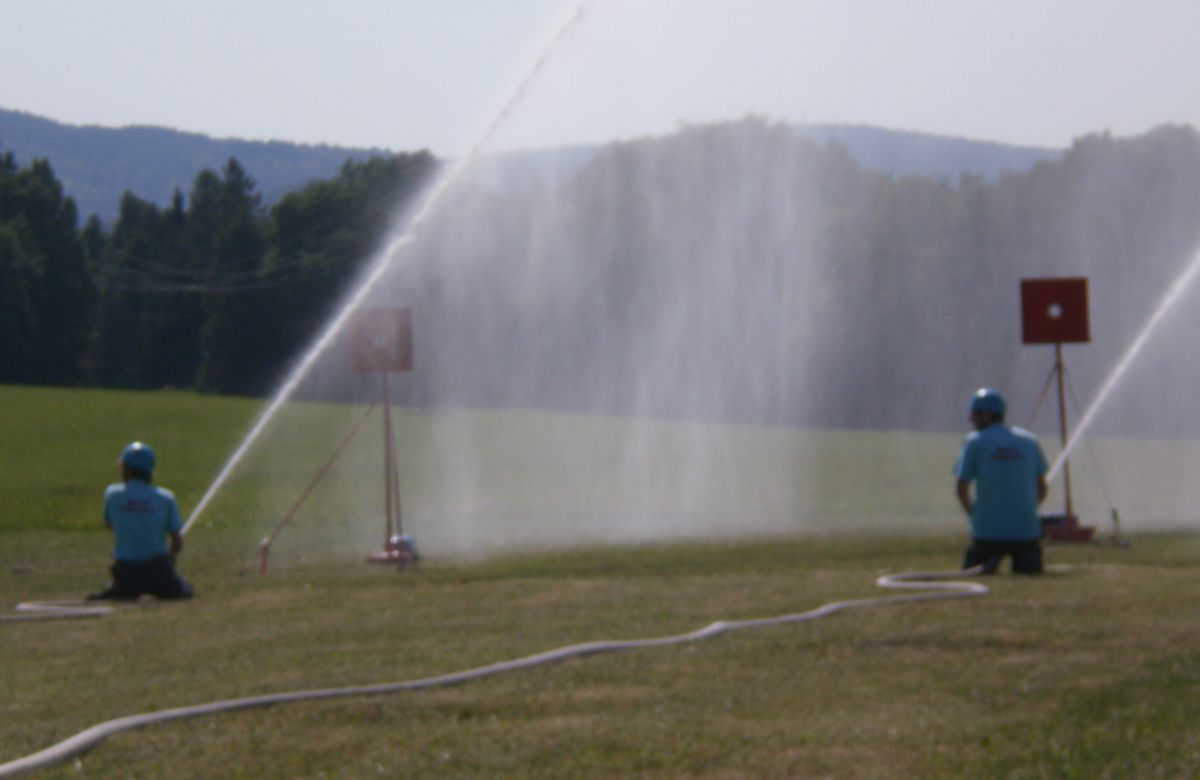 Po malé přestávce na občerstvení a přípravu materiálu se začaly odbíhat požární útoky (2B hadice + přetlakový ventil).