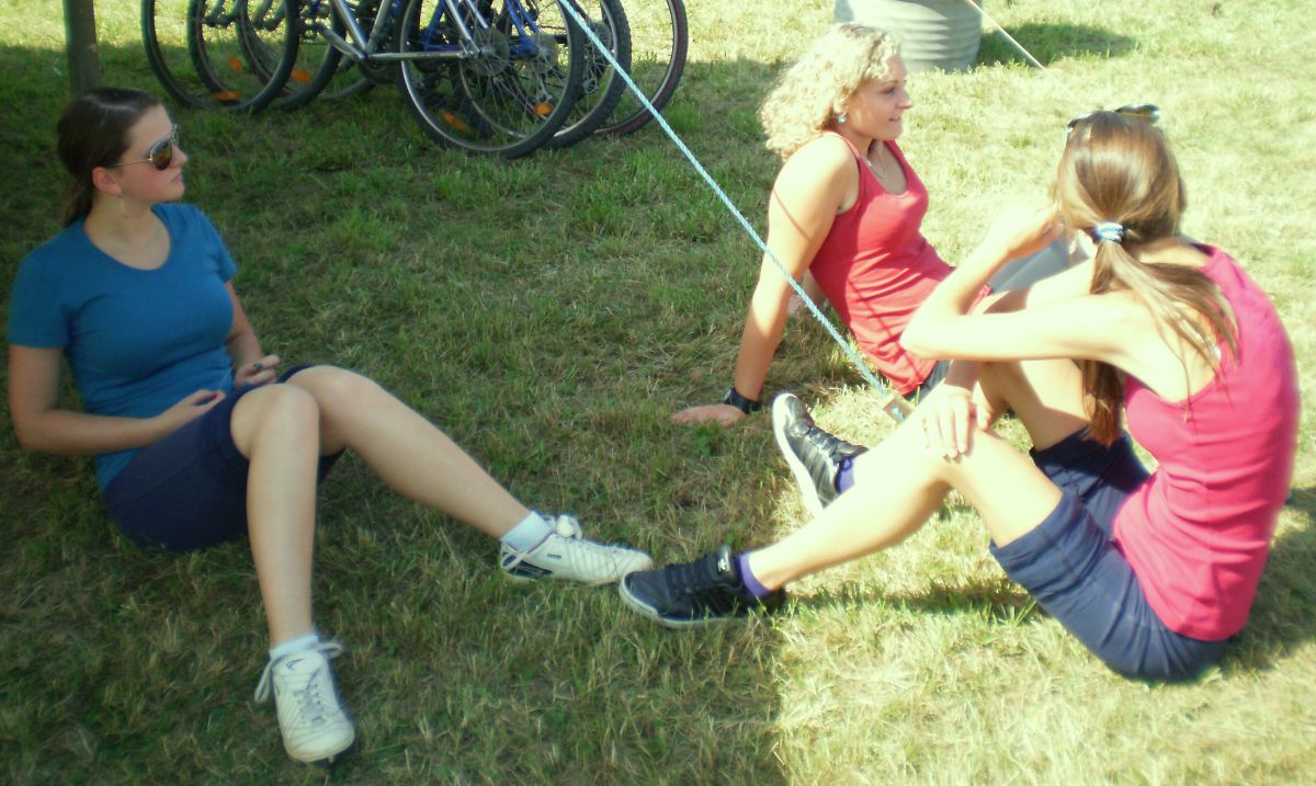 První část soutěže, netradiční štafetu, začínali muži a až poté pokračovaly ženy. V mužské štafetě bylo nutné překonat na 1. úseku gumy a bariéru, na 2. úseku příčné břevno a nakonec opět správně proběhnout pneumatiky. Mužům se podařilo doběhnout v čase 39,1. U ženské štafety byla bariéra nahrazena také příčným břevnem a ženy dokončily s časem 45,9. Zde výborně zabojovala Štepánka, která 3. úsek dobíhala bez jedné boty.