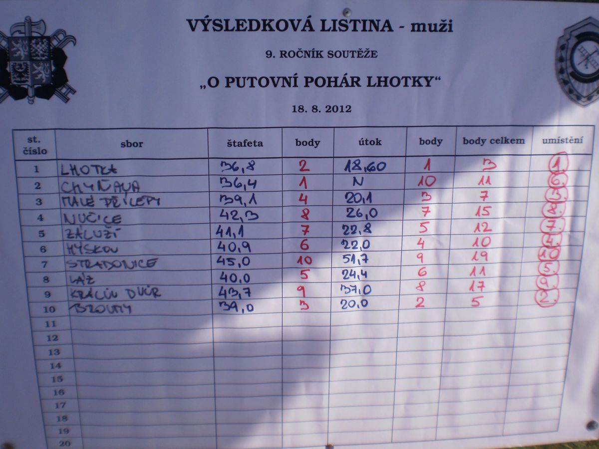 Soutěž byla velmi pěkně zorganizována, počasí nádherné. Znovu se budeme těšit na další ročník, ve kterém lhotečtí oslaví výročí a již nyní slibují změny v soutěžení.