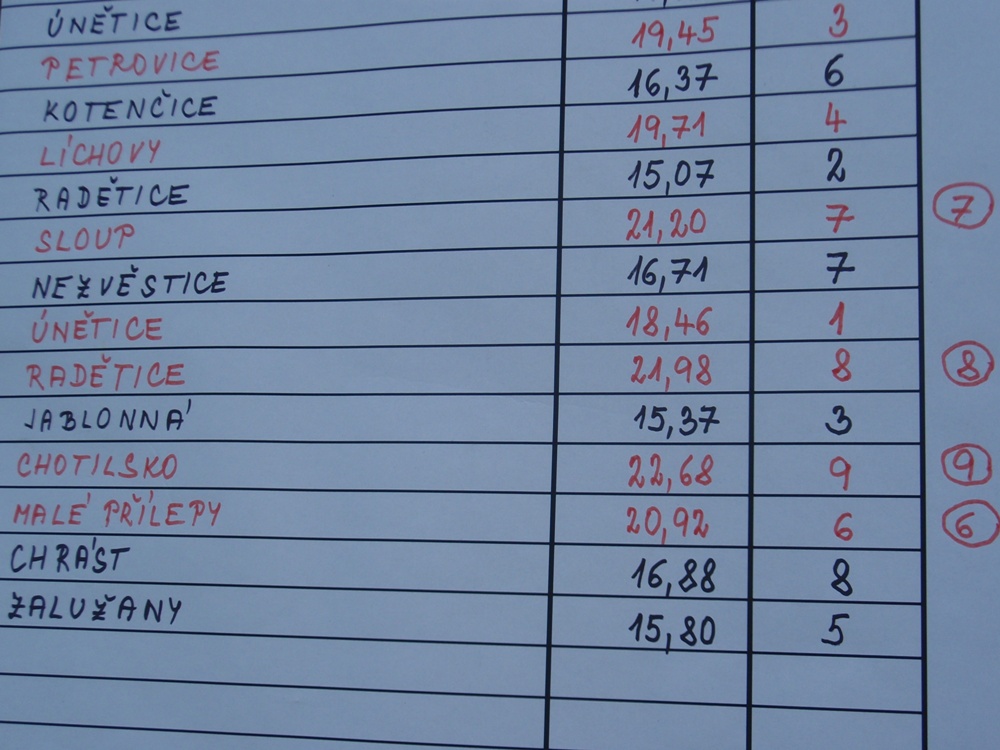 Do druhého kola Brdské ligy se přihlásilo 10. družstev žen. Takové množství ženských družstev na jednotlivých kolech Brdské ligy bylo zaznamenáno v minulosti velmi poskrovnu. Protože naše ženy neměly vlastní soutěžní stroj, s tím byly ostatní přílepská družstva v Trubíně, SDH Zalužany stroj ochotně zapůjčilo na obě víkendová kola brdské ligy. Po krátké instruktáži naší strojnice, vyrazilo družstvo modrých do boje ze zadní pozice. Přestože se útok zdařil, ženy do dalších bojů nezasáhly, protože tento den čas 20, 92 s. v základním kole stačil až na 6. - poslední bodované místo.