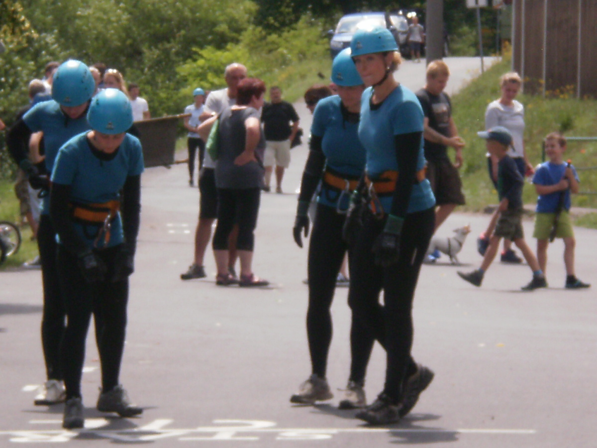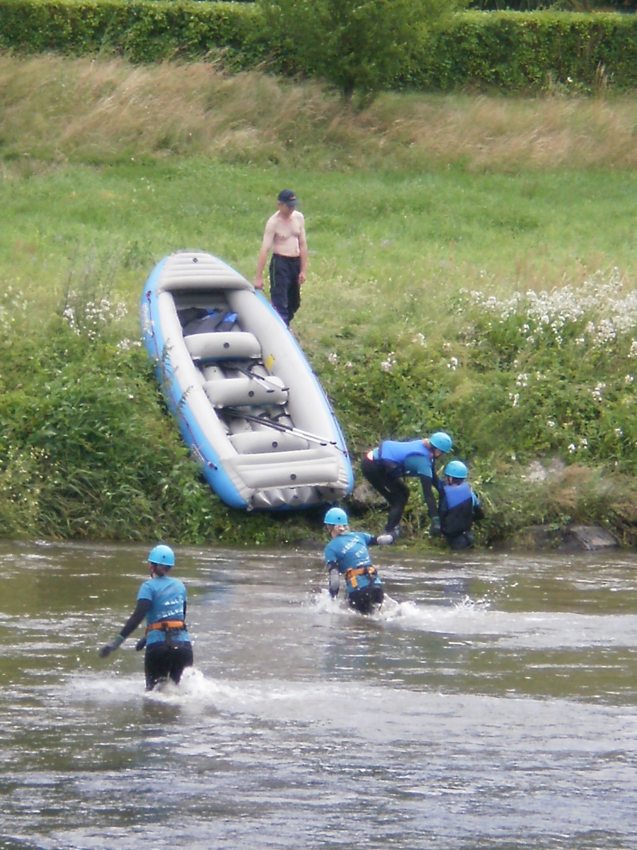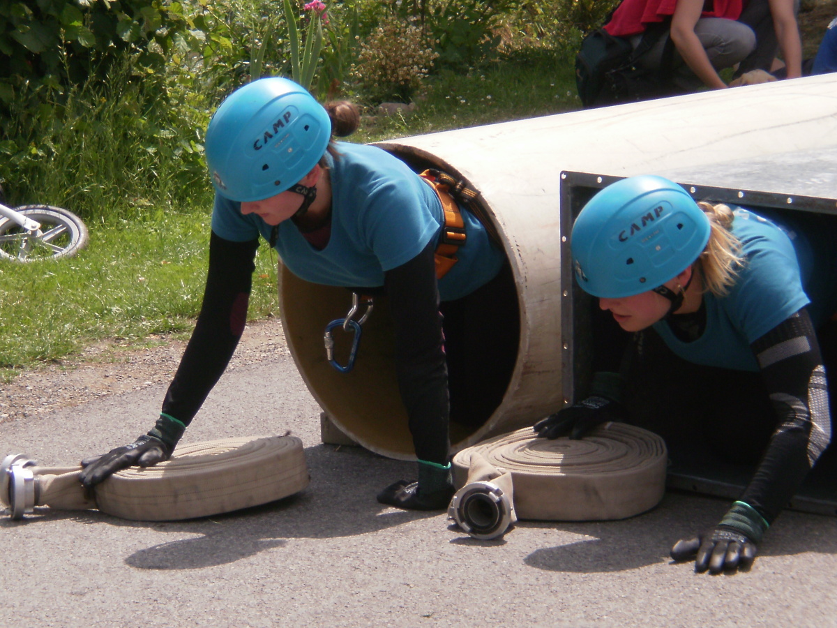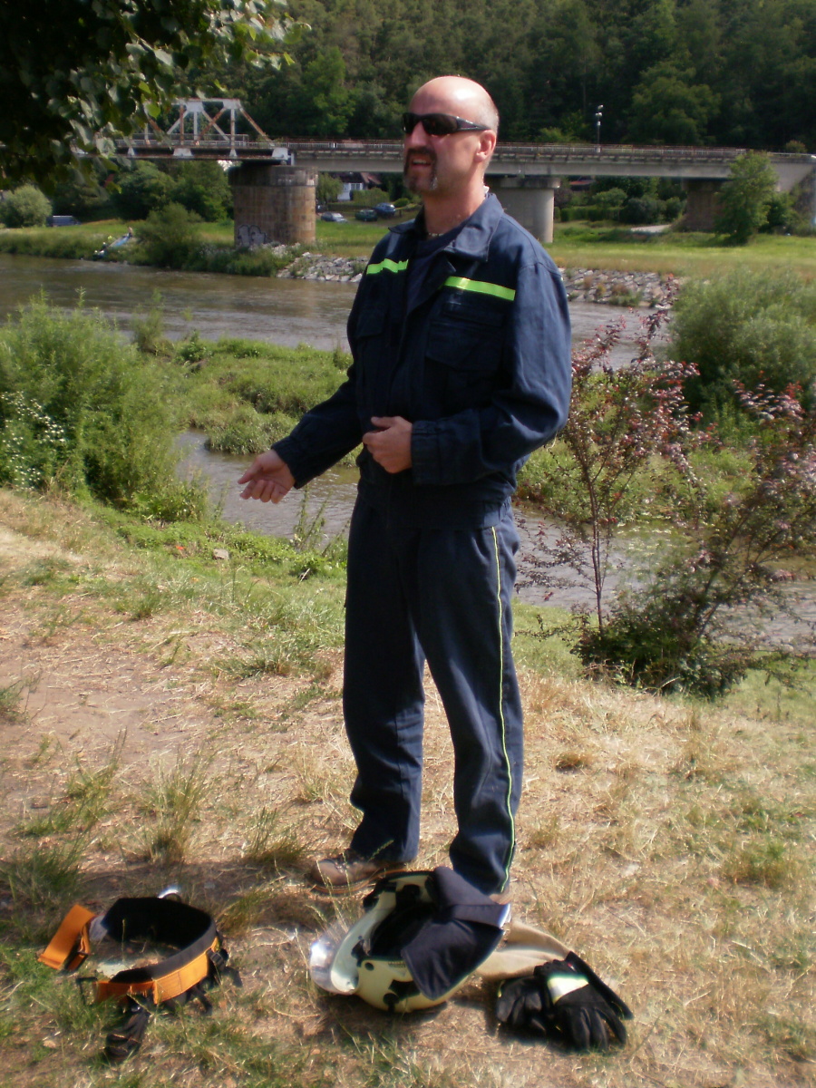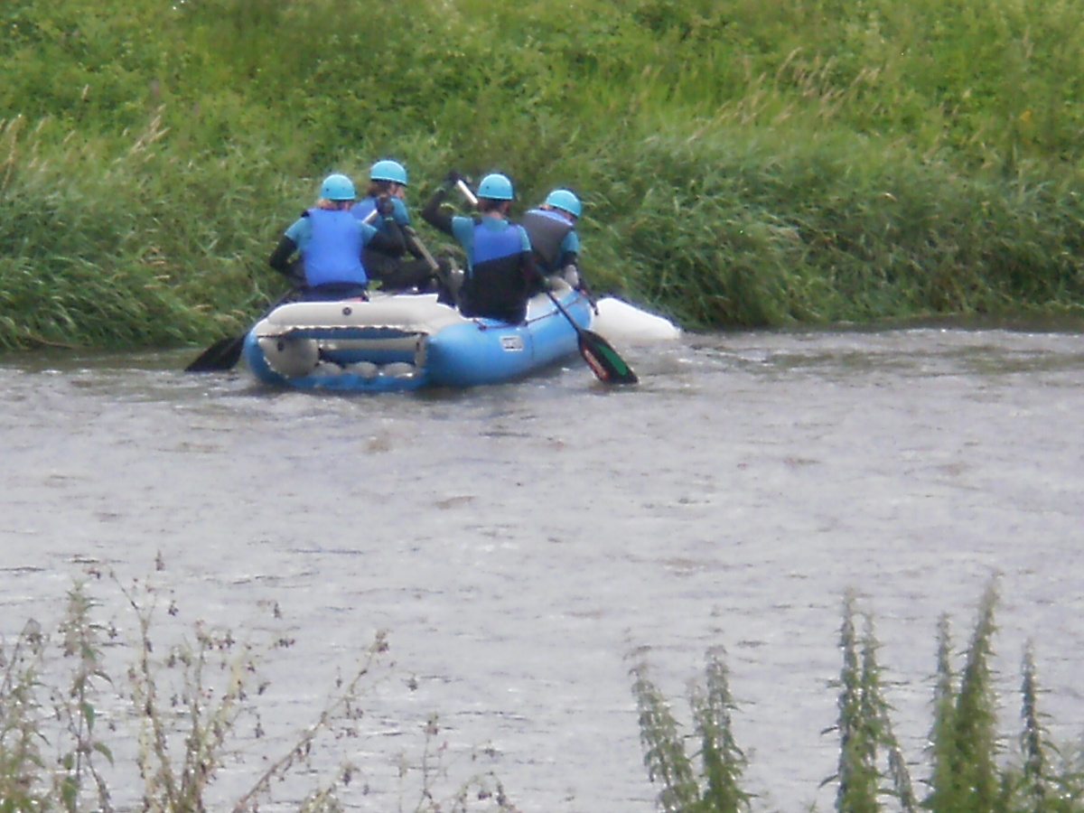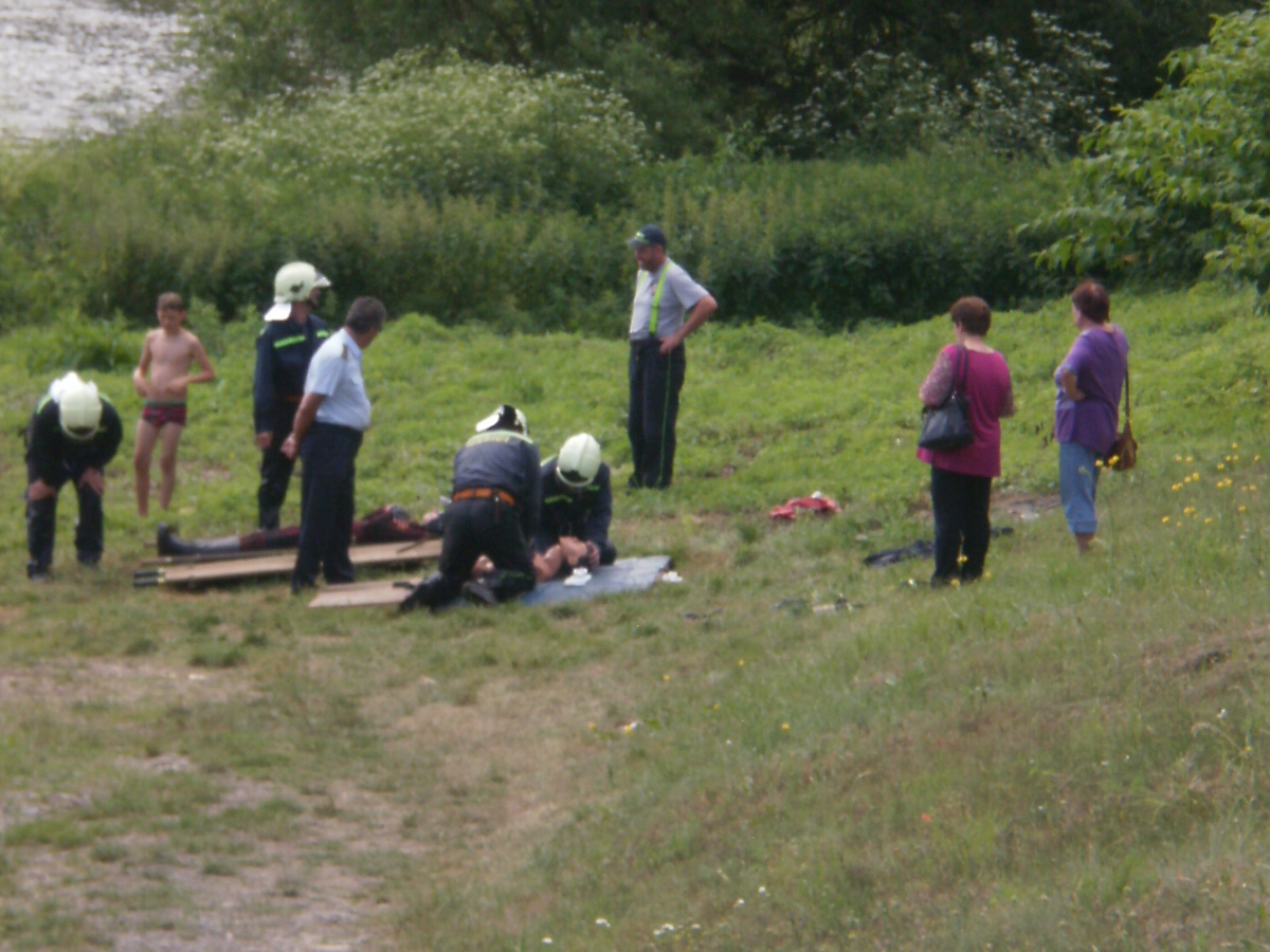 První z našeho sboru nastoupili na start muži. Slanění z mostu proběhlo dobře, jízda na raftu se také celkem podařila. Ale málem minuli lano, přejeli barel a proud je strhával. Nicméně zabojovali, udrželi raft proti proudu a barel vyzvedli jen taktak. U zdravovědy nebylo co vytknout. Kýble už byli opravdu dno sil, přesto je muži zvládli a za obrovské podpory fanoušků doběhli do cíle. Výsledkem bylo 6. místo s časem 11:59 min. Za ženské družstvo běžely Káťa a Verča tuto soutěž úplně prvně. Nicméně se nenechaly zaskočit. Všechny čtyři zvládly slanění velmi dobře. Zaváhaly však při jízdě na raftu, kde se pro oko diváka dvakrát ladně otočily, aby následně vyzvedly barel a spěchaly na vylodění. Brodění na druhý břeh nebylo, kvůli silnému proudu, vůbec příjemné. U zdravovědy musely holky více zaklonit hlavu figuríny, aby správně provedly umělé dýchání. Následovaly kýble a opět doběh do cíle s nosítky a fanoušky za zády. Holky vybojovaly 1. místo, čas 11:27 min.