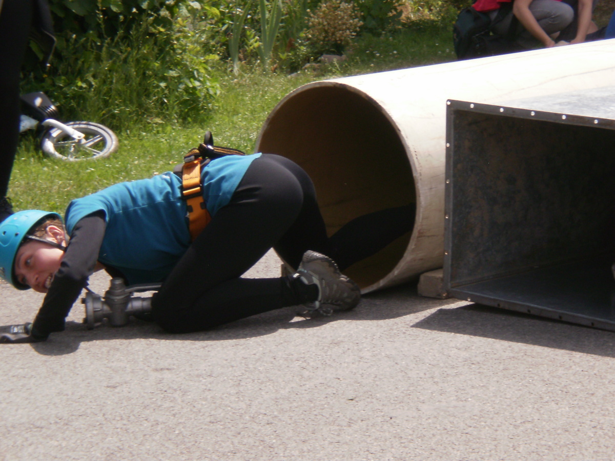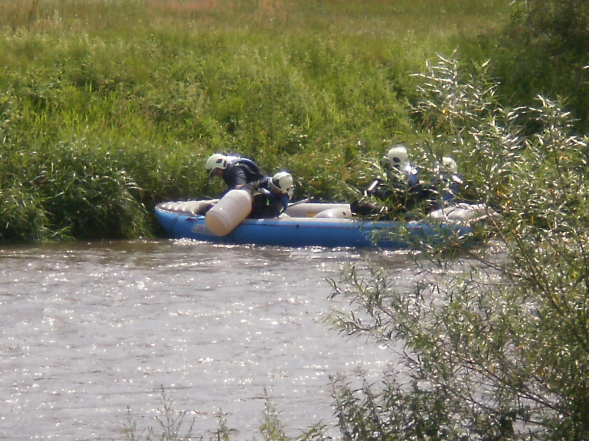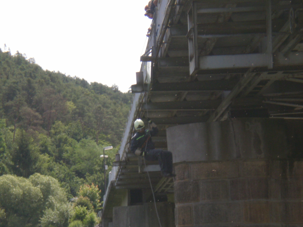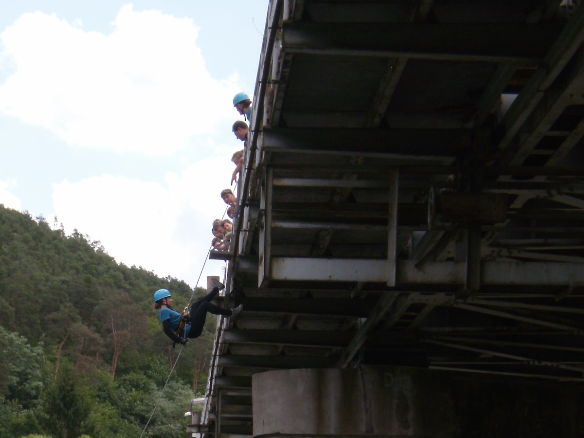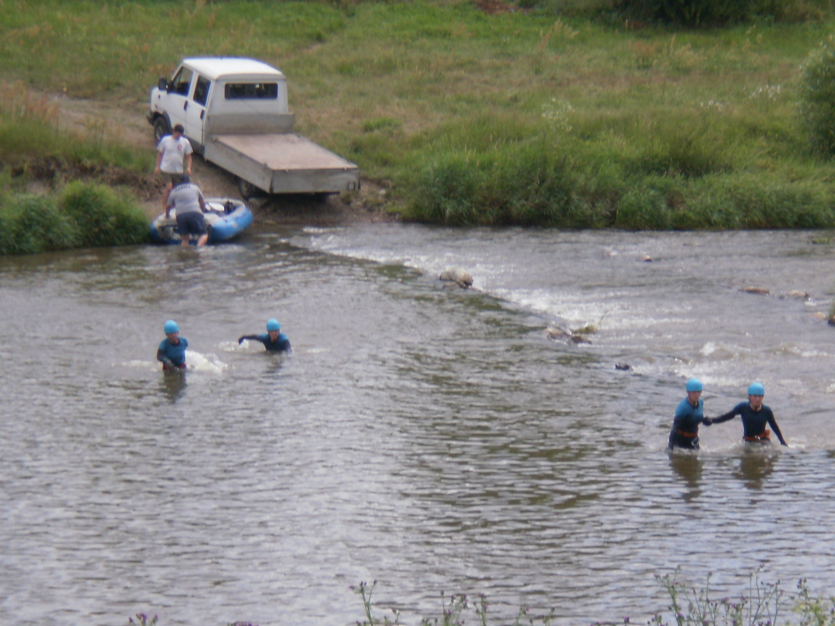 První z našeho sboru nastoupili na start muži. Slanění z mostu proběhlo dobře, jízda na raftu se také celkem podařila. Ale málem minuli lano, přejeli barel a proud je strhával. Nicméně zabojovali, udrželi raft proti proudu a barel vyzvedli jen taktak. U zdravovědy nebylo co vytknout. Kýble už byli opravdu dno sil, přesto je muži zvládli a za obrovské podpory fanoušků doběhli do cíle. Výsledkem bylo 6. místo s časem 11:59 min. Za ženské družstvo běžely Káťa a Verča tuto soutěž úplně prvně. Nicméně se nenechaly zaskočit. Všechny čtyři zvládly slanění velmi dobře. Zaváhaly však při jízdě na raftu, kde se pro oko diváka dvakrát ladně otočily, aby následně vyzvedly barel a spěchaly na vylodění. Brodění na druhý břeh nebylo, kvůli silnému proudu, vůbec příjemné. U zdravovědy musely holky více zaklonit hlavu figuríny, aby správně provedly umělé dýchání. Následovaly kýble a opět doběh do cíle s nosítky a fanoušky za zády. Holky vybojovaly 1. místo, čas 11:27 min.