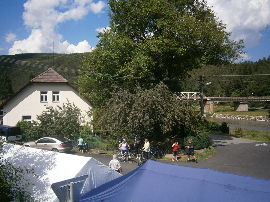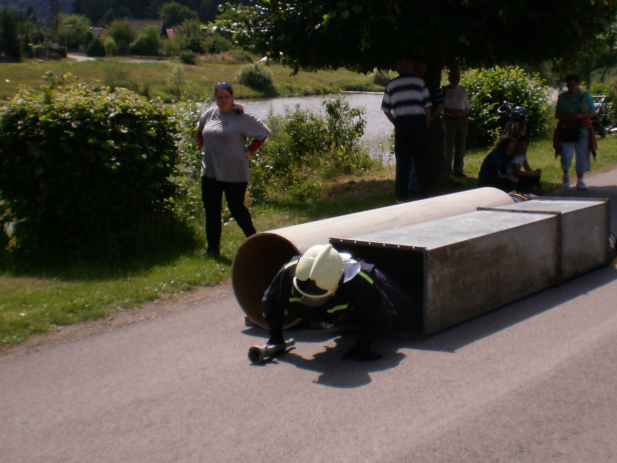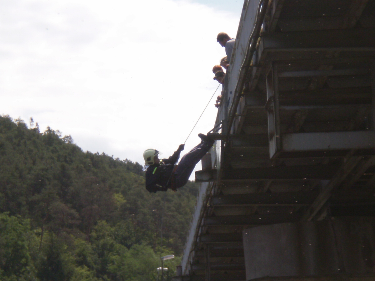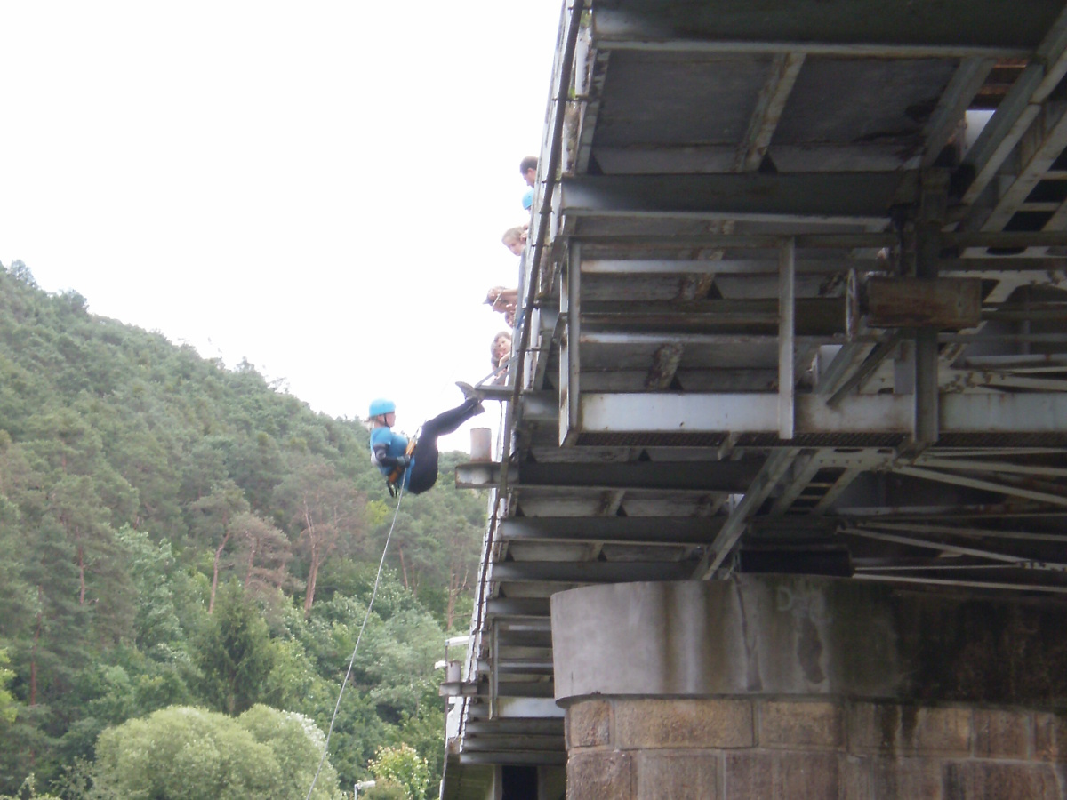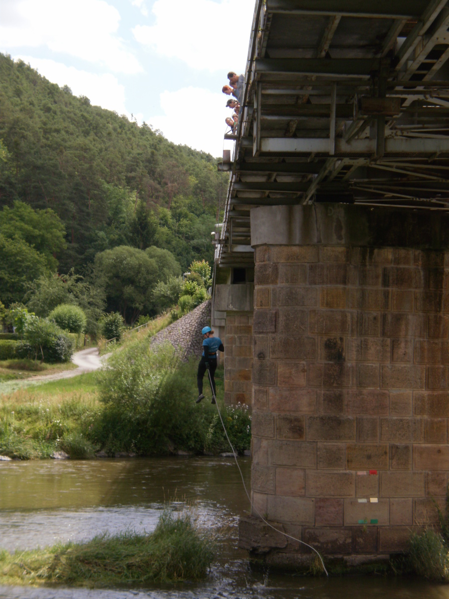 První z našeho sboru nastoupili na start muži. Slanění z mostu proběhlo dobře, jízda na raftu se také celkem podařila. Ale málem minuli lano, přejeli barel a proud je strhával. Nicméně zabojovali, udrželi raft proti proudu a barel vyzvedli jen taktak. U zdravovědy nebylo co vytknout. Kýble už byli opravdu dno sil, přesto je muži zvládli a za obrovské podpory fanoušků doběhli do cíle. Výsledkem bylo 6. místo s časem 11:59 min. Za ženské družstvo běžely Káťa a Verča tuto soutěž úplně prvně. Nicméně se nenechaly zaskočit. Všechny čtyři zvládly slanění velmi dobře. Zaváhaly však při jízdě na raftu, kde se pro oko diváka dvakrát ladně otočily, aby následně vyzvedly barel a spěchaly na vylodění. Brodění na druhý břeh nebylo, kvůli silnému proudu, vůbec příjemné. U zdravovědy musely holky více zaklonit hlavu figuríny, aby správně provedly umělé dýchání. Následovaly kýble a opět doběh do cíle s nosítky a fanoušky za zády. Holky vybojovaly 1. místo, čas 11:27 min.