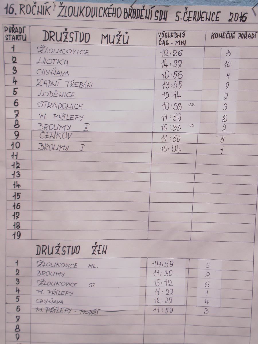 Děkujeme hasičům ze Žloukovic za pěkně připravenou soutěž a fanouškům za velkou podporu. Bez ohledu na umístění družstev a vzhledem k náročnosti této soutěže, je vítězem každý soutěžící jednotlivě. Všichni zúčastnění si tedy zaslouží velké uznání.