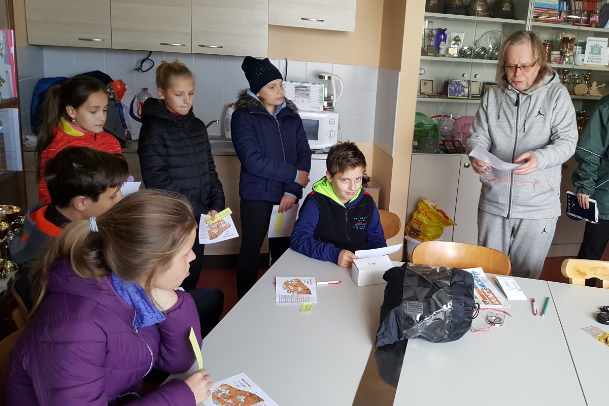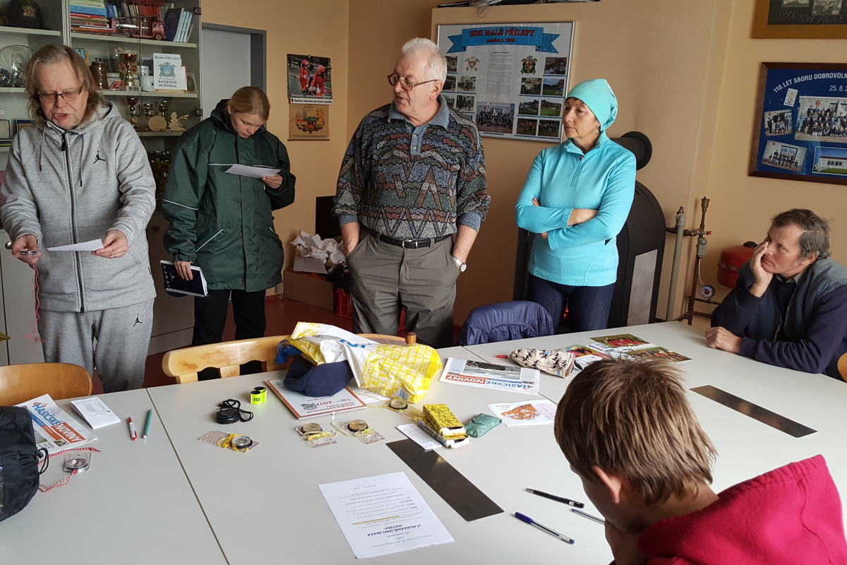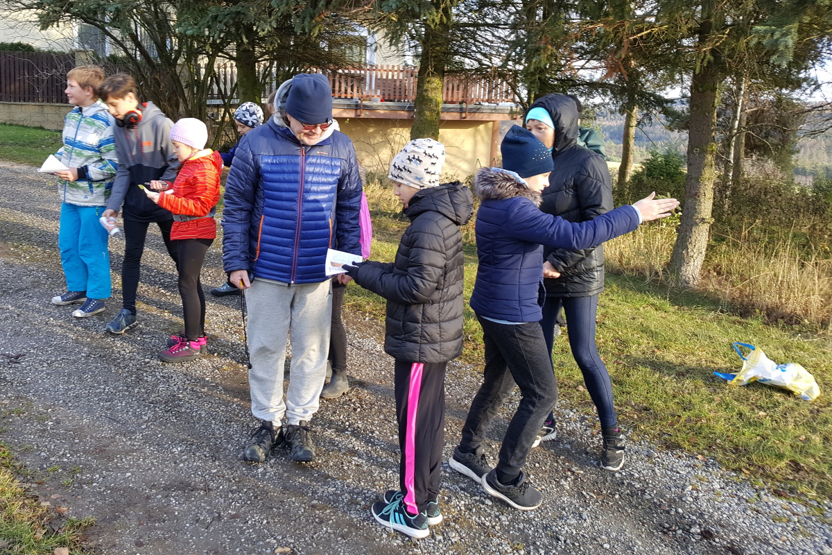 Trať byla relativně krátká, ale i tak se ukázala spousta nejasností a možných chyb. Celou trať bez chyby v podstatě proběhl jen Vojta Radechovský . Honza Kučera úplně minul jedno stanoviště, společně s Matějem přeběhli ještě jedno na trase, ale tam se ještě dokázali vrátit. Žofka to dokonce z prvního stanoviště dokázala střihnout rovnou na desítku, Julča s Žofkou chvilkou hledali stanoviště a Bětka s Adélkou se taky vraceli. Po doběhnutí se děti přesouvali do vytopené hasičárny, kde byla připravená tatranka a teplý čaj. Po spočtení času a legitek bylo vyhlášení výsledků.
